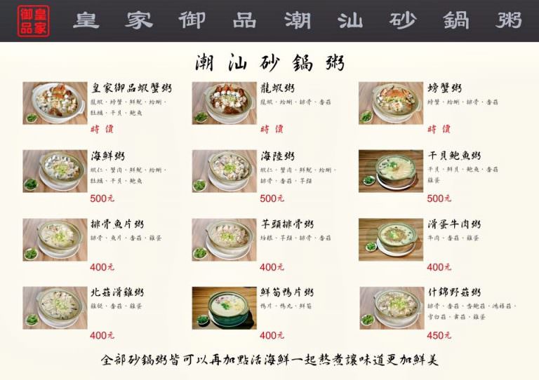 皇家御品潮汕砂鍋粥菜單