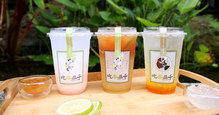 吃茶三千的杯貼是品牌經典識別,以台灣茶元素為主題,象徵吃茶三千只使用台灣好茶的心意。