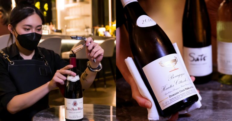服務人員又拿出一款據說是勃根地酒迷此生必嚐的「金盃酒」,葛羅兄妹酒莊是上葉丘精華地區明星酒莊之一,香氣濃郁色澤偏金黃,尾韻有濃厚礦石風味,屬於村莊級的白酒。喝酒不開車,未成年請勿飲酒