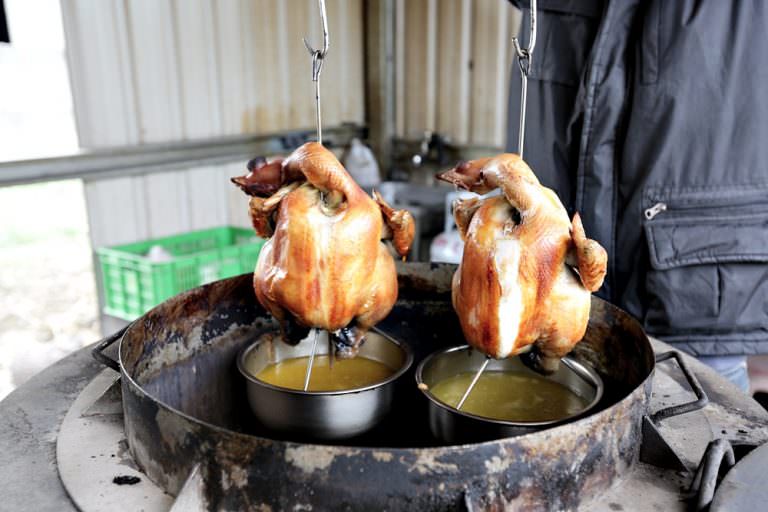 現點現烤的甕缸雞就在餐廳旁的小屋裡火熱進行中。